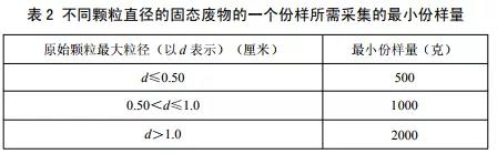 b) 依據(jù)固態(tài)廢物的原始顆粒最大粒徑,不小于表 2 中規(guī)定的質(zhì)量。